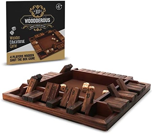 1-4 Players Shut The Box Dice Game, Wooden Board Table Math Game and Shut-The-Box Instructions for Kids Adults, Family Classroom Home or Pub (12 Inches)