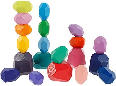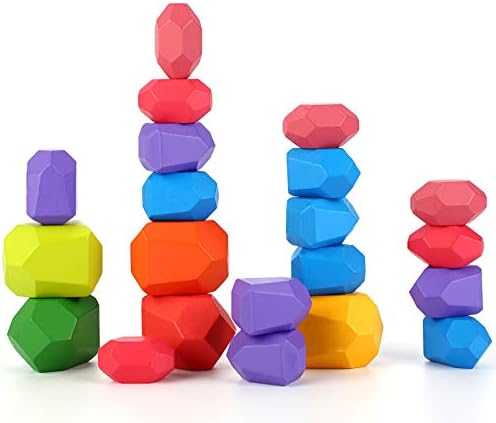 20PCS Wooden Balancing Stacking Stones Rocks, Wooden Balancing Building Blocks Colored Stones Stacking Game Rock Blocks Toy,Preschool Learning Educational Puzzle Toys for Kids