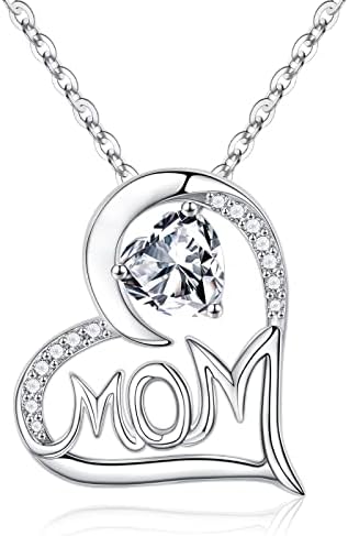 925 Sterling Silver Mom Necklace Gifts, Heart Birthstone Necklace for Mom Jewelry Anniversary Christmas Valentines Mothers Day Birthday Gifts for Mom New Mom Bonus Mom Stepmom from Daughters Son