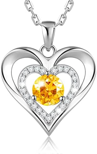 925 Sterling Silver Large Heart Necklace with 5A Birthstone Zirconia 18K Rose Gold Plated Love Birthstone Necklaces Jewelry Valentines Day Mothers Day Birthday Gifts for Mom Her Women Girls Wife Girlfriend, Chain Length 17.7″+2″ Extender