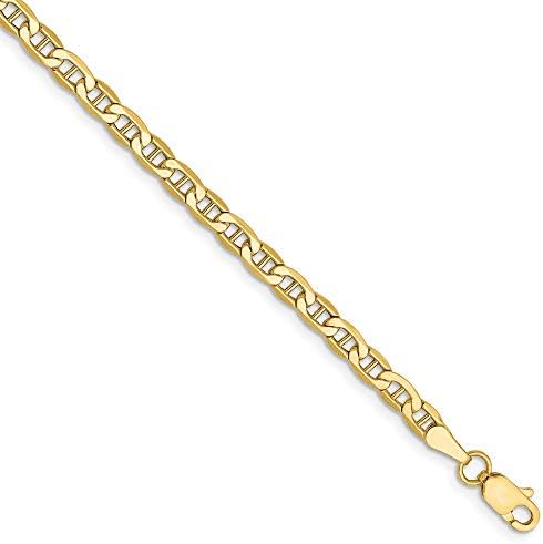 14k Yellow Gold 10 Inch 3mm Concave Anchor Chain Anklet Fine Jewelry For Women Gifts For Her