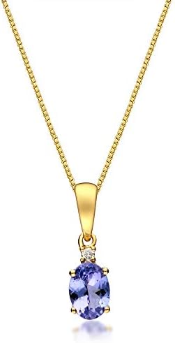 Gin & Grace 10K Yellow Gold Mozambique Genuine Tanzanite Pendant with Diamonds for women | Ethically, authentically & organically sourced (Oval-Cut) shaped Tanzanite hand-crafted jewelry for her | Tanzanite Necklace for women