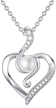Zoeniya Genuine White Freshwater Cultured Pearl Pendant Necklace s925 Sterling Silver & CZ Love Infinity Design Necklace for Women Wife Girlfriend Anniversary Birthday