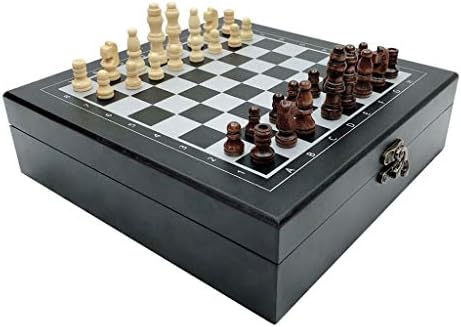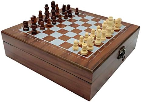 ZSEDP Folding Carving Wooden Chess Set Portable Chess Game Poker Dice 4 in 1 Family or Outdoor Entertainment Game (Color : E)