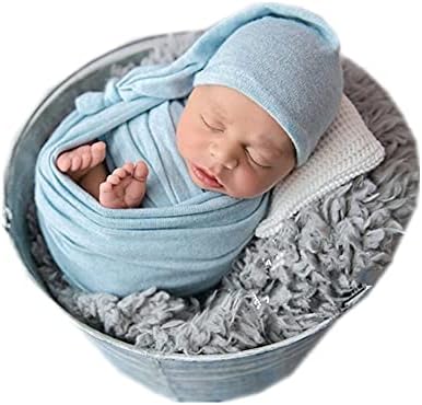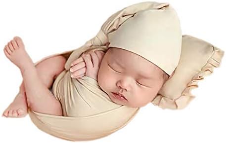 Newborn Photography Wrap Blanket Props Infant Baby Boy Girl Photos Shoot Stretch Swaddle Wrap Hat Pillow Set Outfits