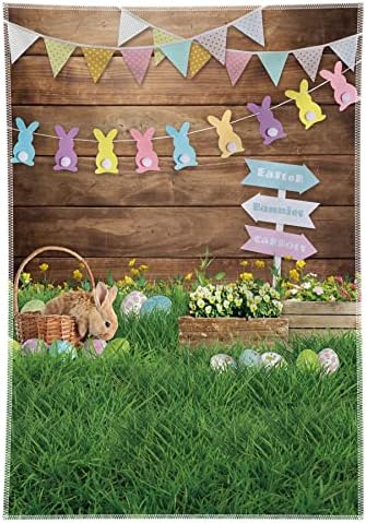 Allenjoy 7x5ft Fabric Green Spring Easter Backdrop Supplies for Professional Photography Hare Rabbits Decoartions Colorful Eggs Studio Children Cake Smash Portrait Pictures Photoshoot Props Favors