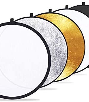 Etekcity 24″ (60cm) 5-in-1 Photography Reflector Light Reflectors for Photography Multi-Disc Photo Reflector Collapsible with Bag – Translucent, Silver, Gold, White and Black