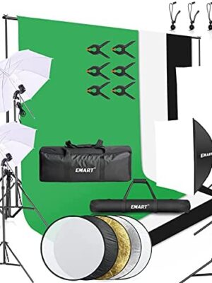 EMART 8.5 x 10 ft Backdrop Support System, Photography Video Studio Lighting Kit Umbrella Softbox Set Continuous Lighting for Photo Studio Product, Portrait and Video Shooting Photography