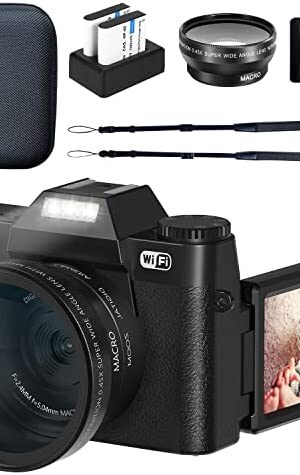 Digital Camera 4K Camcorder 48MP Photography VETEK Camera for YouTube with WiFi, 3.0″ IPS 180°Flip Screen, Wide Angle Lens, Macro Lens, 16X Digital Zoom, 32GB SD Card, 2 Batteries(Black)