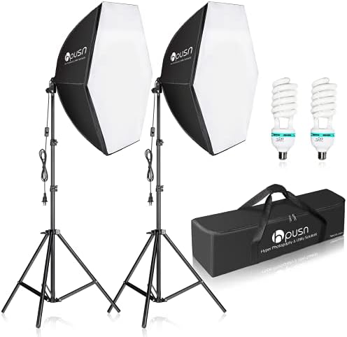 HPUSN Softbox Photography Lighting Kit 30″X30″ Professional Continuous Lighting System Photo Studio Equipment with 2pcs E27 Socket 5400K Bulbs for Portraits Advertising Shooting YouTube Video