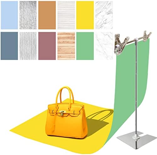 iprotech 6PCS 12Patterns Double-Sided Photography Background Paper With Stand, Waterproof Reusable 34x23in Morandi Marble Wood Brick Flat Lay Photo Tabletop Backdrops for Food Jewelry Cosmetics Makeup