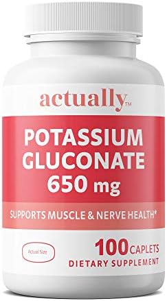 Actually Potassium Gluconate 650mg Caplets, Support Muscle and Nerve Health for Adults, Day Supply, 100 Count