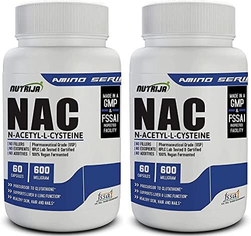 Nutrija N-A-C (N-Acetyl-C ysteine) 600 mg Free Radical Protection 60 Tablet (Pack of 2 Bottle)