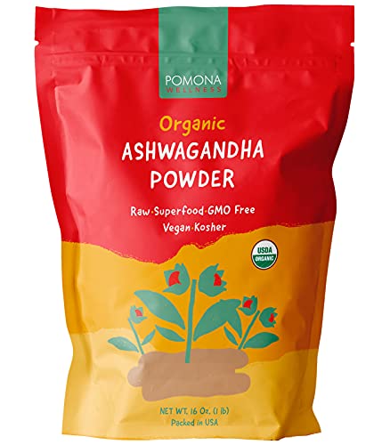 POMONA WELLNESS Organic Ashwagandha Powder 1 lbs (16oz)- Raw & Non-GMO – Immune System Support and Stress Relief Supplement.(Packaging May Vary)