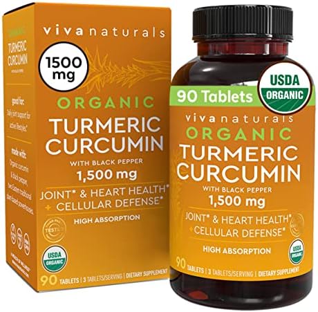Organic Turmeric Curcumin Supplement 1,500mg (90 Tablets) | with Black Pepper for Superior Absorption, High Potency Standardized to 95% Curcuminoids, Natural Joint Support