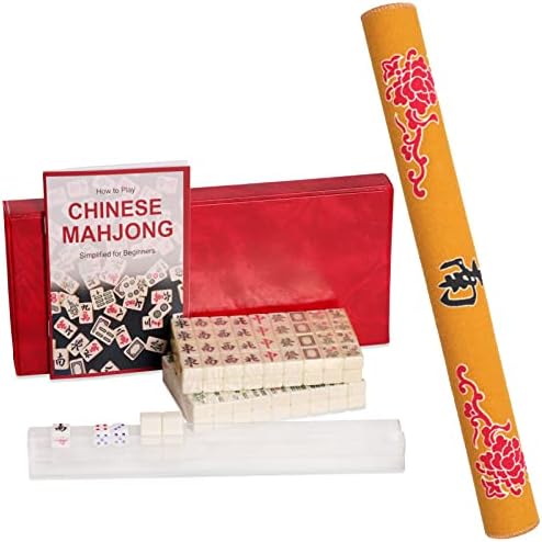 GUSTARIA Travel Mini Mahjong Set(0.8’’) with Mahjong mat, Chinese Mahjong Game Set with 146 Ivory Tiles, 4 Racks & Red Carrying Case, Portable & Lightweight for Family Leisure Time