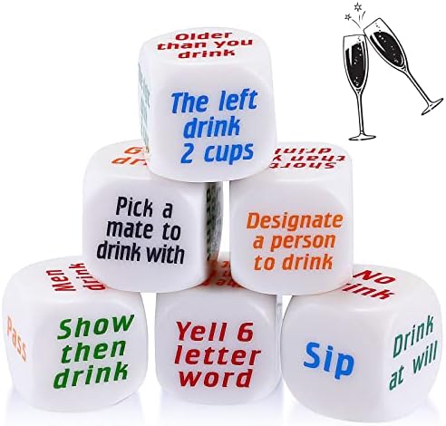 Hanaive 6 Pcs Party Drinking Bar Dice Game Rolling Decider Drunk Frenzy Bachelorette Party Game for Adults Birthday Wedding Graduation Party Favors Toys White Elephant Gifts