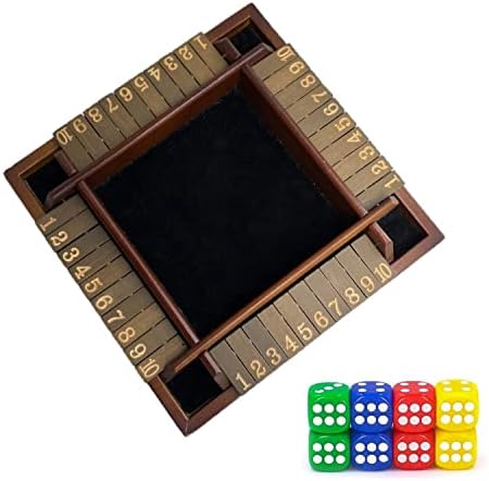 HILANO Shut The Box Game Wooden 4 Player Shut The Box Dice Game with 8 Dices Wooden Board Game for Kids Adults, Smart Game Indoor, Table Game for The Party Family or Bar, Travel Game