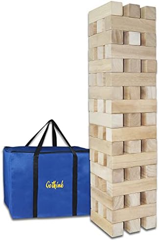 GOTHINK Giant Tumbling Tower Game, Super Large 51pcs Wooden Blocks Stacking Game, Stack to Over 6 Feet, Carry Bag, Jumbo Outdoor Indoor Game Toy Gift