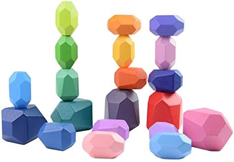 Heamuy 20 Pcs Wooden Blocks Set Blocks Stacking Building Balancing Game Colored Pine Wood Stone Stacking Educational Puzzle Toys for Kids Blocks Toddlers Preschool Learning Supplies