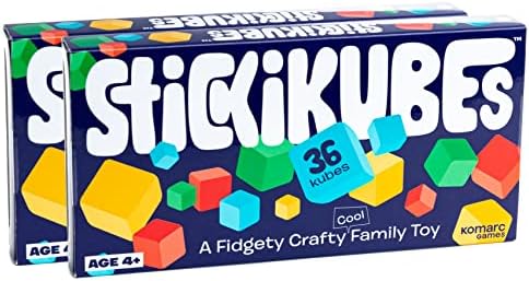KOMARC GAMES StickiKubes – Mini Stacking Cubes That Stick to Anything – 36 Cubes in 4 Colors (2 Pack)