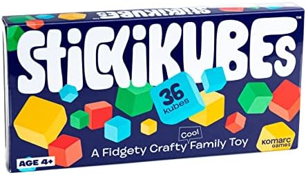 KOMARC GAMES StickiKubes – Mini Stacking Cubes That Stick to Anything – 36 Cubes in 4 Colors