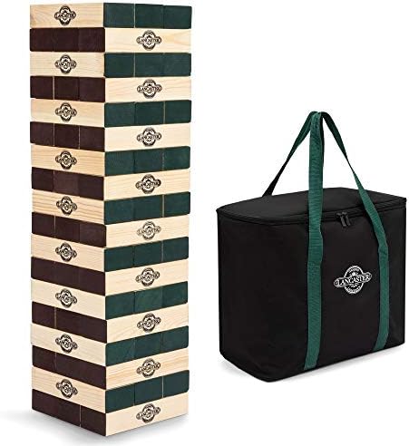 Lancaster Gaming Company Giant Oversized Wooden Jumbo Tumbling Tower Outdoor Game for Tailgating, Camping, 54 Pieces, Black & Pine