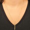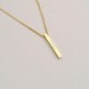 14k Solid Gold 3D Cube Bar Necklace