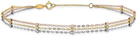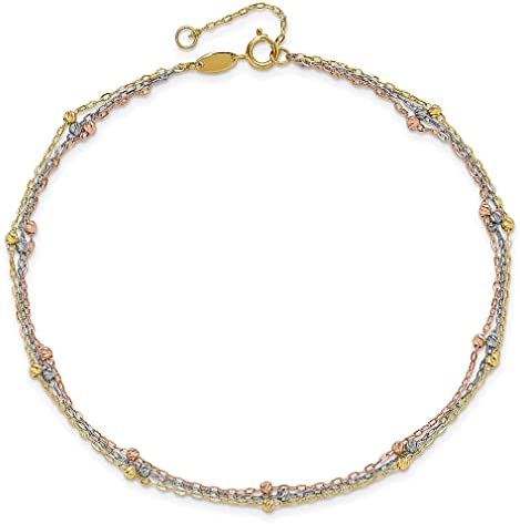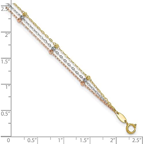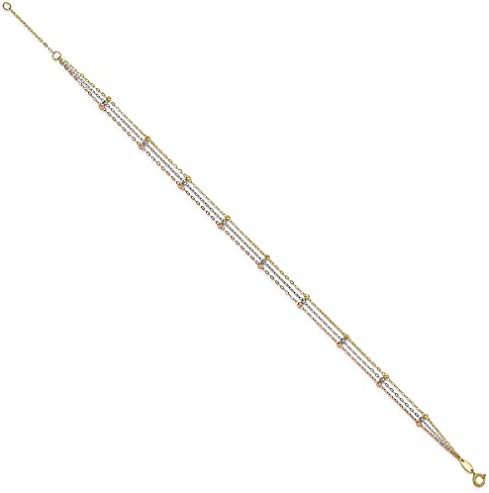 ICECARATS DESIGNER JEWELRY 14K TRI COLOR 3 STRAND BEADED 9 INCH PLUS 1 INCH ANKLET