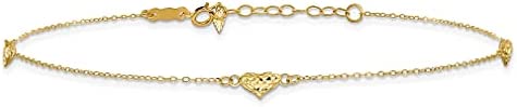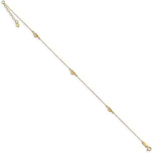 ICECARATS DESIGNER JEWELRY 14K YELLOW GOLD TRIPLE HEART 9 INCH PLUS 1 INCH ANKLET