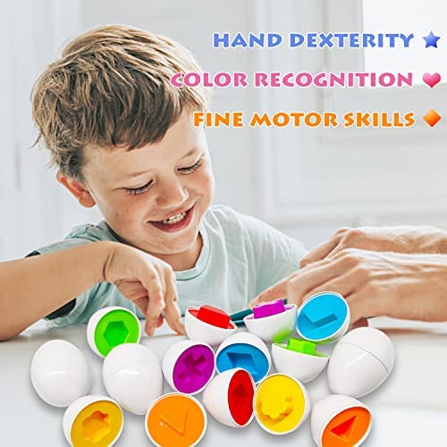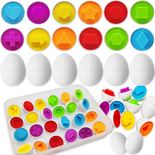 🔷Colors & Shapes:Each educational egg can be divided into two halves,each egg is designed with 1 shape and 1 color inside,12 different shapes and 6 colors in total.