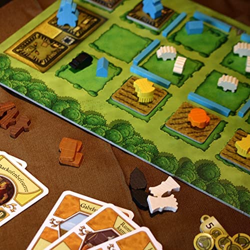 ACQUIRE WEALTH: Points are awarded for the number of fields, pastures and fenced stables as well as Grain, Vegetables, Sheep, Wild boar and Cattle. Players lose one point for each unused farmyard space. Additional points are awarded for extension and renovations, family members, and played Occupation and Improvement cards.