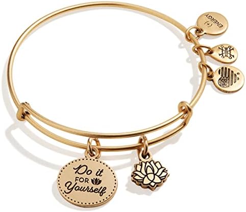 With roots secured in the mud, a stem that grows through water, and a flower that lies pristinely above, the lotus signifies the progression of the soul. Paired with the powerful mantra ‘Do It For Yourself’, this lotus bracelet is a reminder of your innate desire to grow spiritually. Alex and Ani Do It For Yourself Charm Bangle expresses your commitment to self-growth. Crafted in our Rafaelian Gold finish, this beautiful bangle features a gold embossed circle charm that says “Do it for yourself” on the front alongside a lotus flower charm. Remind her what she means to you with this stylish adjustable bracelet that she can cherish for years to come. Our expandable bangle adjusts from 2″ to 3.5″ in width. Innovative, patented, and completely original technology ensures a customized fit of this elegant bangle bracelet. Made in the U.S.A, this pretty charm bracelet is nickel-free and has a timeless classic design. Show her how important she is to you with the Alex and Ani Connections Expandable Bangle, a gift she can always wear as a reminder of your pride and love, year after year. Perfect for her birthday, Christmas, your wedding day or other important milestones and holidays.