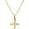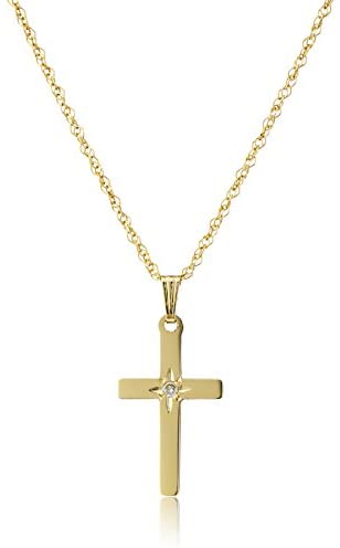 14k yellow gold classic solid polished diamond accent cross.