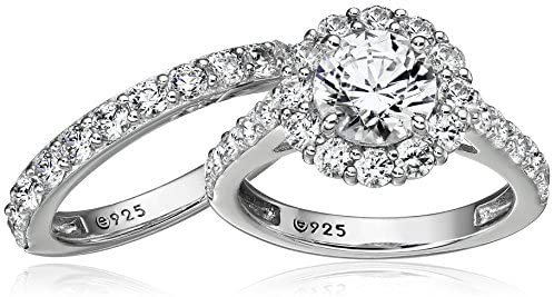 An Amazon brand – Flower halo ring, set with centerpiece and halo of Swarovski Zirconia