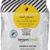 Our AmazonFresh Just Bright light roast whole bean coffee is made with high quality 100% Arabica beans, expertly roasted and immediately packed for freshness. Crisp and clean with nutty caramel notes, it’s a mild cup with a smooth finish. Pour yourself a good morning.