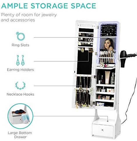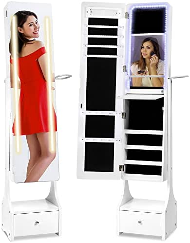 ADJUSTABLE TILT: Innovatively built with a sturdy base that can be tilted to 3 different angles to give the best head-to-toe view for easy and convenient outfit planning while a magnetic door ensures accessories stay safe inside