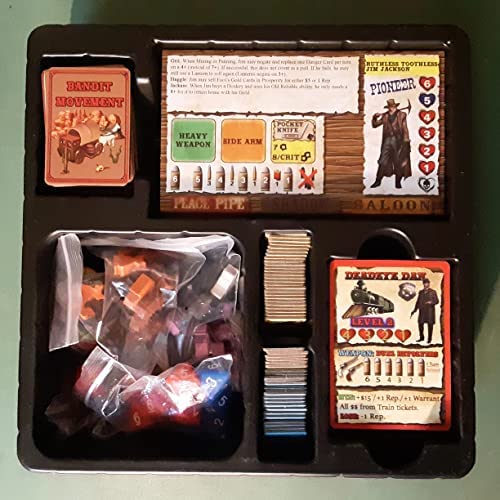 UNIQUE ASYMMETRICAL GAMEPLAY: (2-6 Players / 2-3 Hours) Choose either to go it alone as a Pioneer or play Co-op with the Bandit Gang. Bandits can use hidden movement to ambush unsuspecting victims from the shadows. Pioneers can ride the Train around the map to evade and confuse the Bandits. All 16 characters have multiple abilities to help you get rich and stay alive. Regardless of which side you choose, you’ll need to load up with Weapons, Items, Pets, and Power Cards.