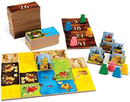 Build up the most prestigious kingdom by claiming wheat fields, forests, lakes, grazing grounds, marshes, and mountains. Your knights will bring you riches in the form of coins — and if you make sure to expand the towns on your lands, you will make new buildings appear, giving you opportunities for new strategies. You may win the Queen’s favors . but always be aware of the dragon!