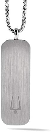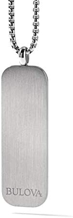 Sleek brushed stainless-steel dog tag pendant engraved with the Bulova logo on one side and signature tuning fork on the other makes a classic layering piece hanging on the 26″ to 28″ adjustable classic round box link stainless steel chain.