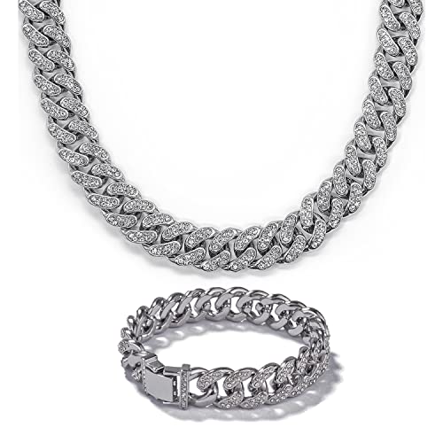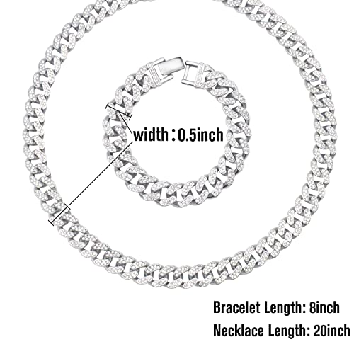 ★【Cuban chain size】: Necklace: Length-20inches, Width-0.3inches, Bracelet: Length-8 inches, Width-0.3inches.