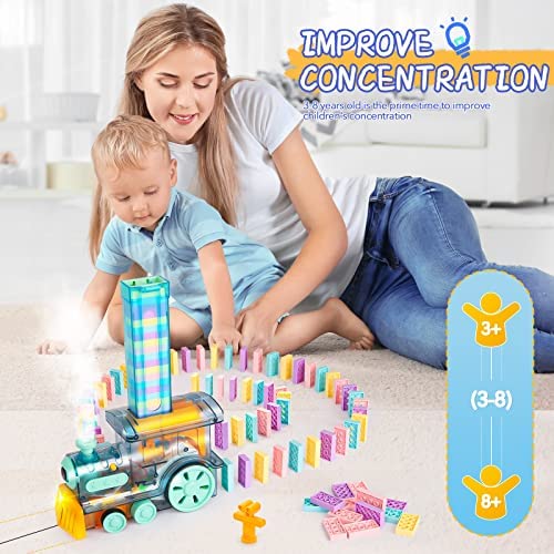 đăDOMINOES KIDS EDUCATIONAL TOYSăLittle train automatically places dominoes with 4 different colored blocks and different shapes inside the blocks to arouse kid’s interest, stimulate their creativity and imagination. Help them develop color recognition, cognitive skills, spatial relationships, and teamwork. Dominoes is also an interactive educational toy between parents and children, exercising children’s brain power and fine motor skills, and enhancing parent-child relationships.