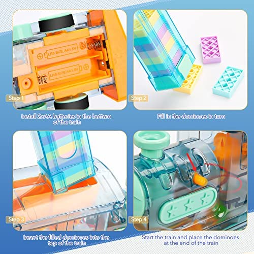 đăSAFE MATERIAL & IDEAL GIFTăThe kids toys are made of high quality ABS material, non-toxic and tasteless, sturdy and durable, with smooth edges to ensure the safety of children when playing. Domino train can also be used as a birthday gift, Christmas gift, New Year gift and other holiday gifts. Configured with colorful box packaging, kids will like it more. If you have any problem after using the train, please contact us, we will provide a satisfactory solution.