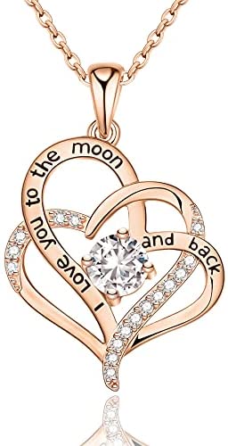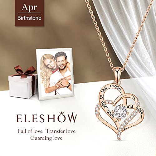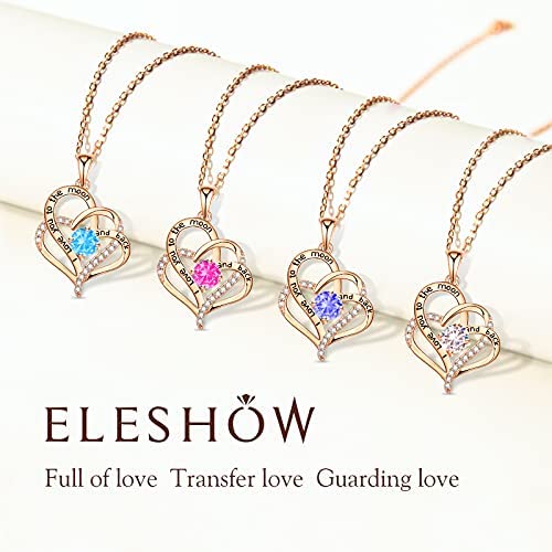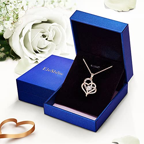 EleShow Mothers Day Gifts for Mom from Daughters Love Heart Necklace for Women Sterling Silver Plated with 14K Rose Gold Pendant I Love You 5A Cubic Zirconia Birthstone Romantic Gifts for Her on Valentines Day Birthday Anniversary Jewelry Gifts for Women Girls Mom