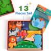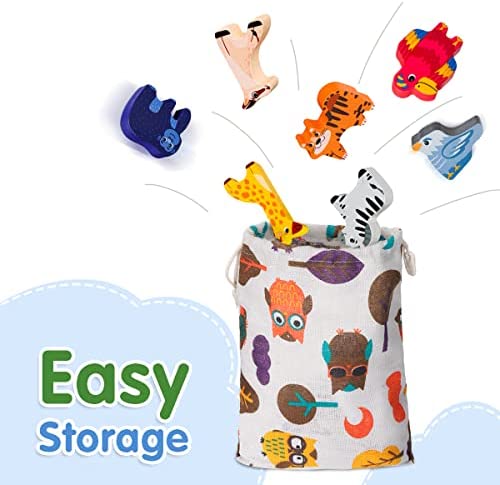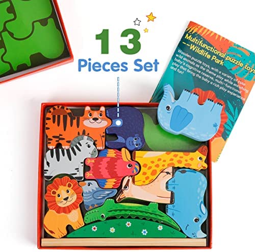 🦏Multifunctional puzzle toys–Wildlife Park 🐦Fantykids wooden puzzle toys, with a variety of cute wild animals as the theme play while enriching baby’s cognitive reserve, multi-functional play that bring the baby a rich play experience and fun! 🦜Let’s know some new friends: Lions, Rhinos, Zebras, Orangutans, Parrots, Elephants, Crocodiles, Giraffes, Tigers, Goats and birds. Bring them home now, they can’t wait to meet you! 🐦Game one Puzzle game: According to the animal wheelhouse on the base, place each critter correctly on the base. Which critter is this shape? 🦢Game two Stacking Game: Stack the animals up in layers to ensure that they do not collapse. Stack up as high as possible! 🌴Game three Balance Stacking Game: Advanced version of the stacking game, for babies who have mastered the game two can increase the difficulty, the arc of the grass wooden blocks as a base, the small animals will be stacked. Although it is difficult, but smart you can definitely do it! 🦘Game four Seesaw Game: Build a seesaw for the animals with grass blocks and small wooden strips! Place different animal blocks on each end of the seesaw to keep it balanced.