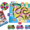 Includes – 1 Road Trip Game Board, 1 Spinner, 2 Micro Figures, 4 Van Movers, 4 Van Mats, 58 Micro Figure Cards, And 6 Surprise Suitcase Tiles