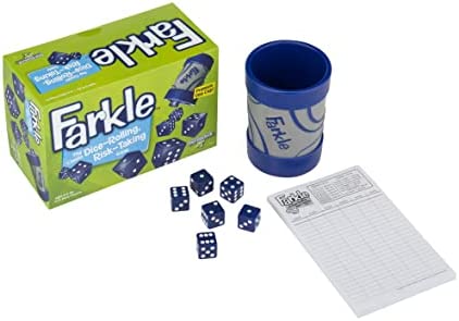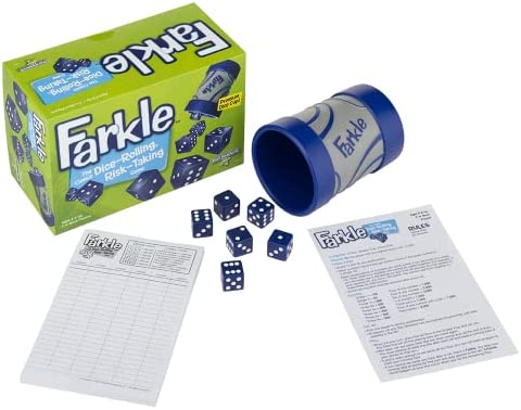 Become a Farkle fanatic with this Classic Dice-Rolling, Risk-Taking Game that comes with its own premium Dice Cup. The new dice cup is perfect for shaking to your heart’s content and slamming down on the table! Take a risk and keep rolling to build your score. Or play it safe so you don’t lose your points in a Farkle. It’s a fight to the finish in this fabulously fun game of strategy and luck! For 2 or more players.