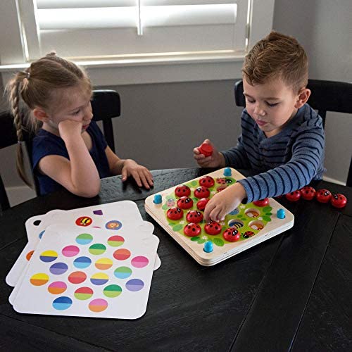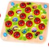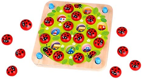 A LOVELY LADYBUG MEMORY GAME; Features game board, 20 wooden ladybugs, 5 double-sided puzzle cards
