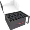 Feldherr Storage Box M for large based miniatures. Storage box for miniatures on large base (base size 30 mm – 40 mm). In addition to the 60 figures on a 30 mm – 35 mm base, there is another 28 miniatures on 40 mm base in this storage box.