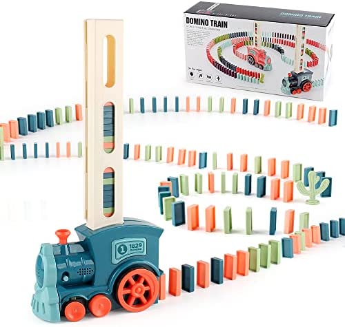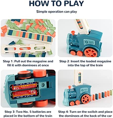 【Safe And High Quality Material】Domino train toy made of premium ABS, Each edge of the arc-shaped dominoes of smooth edges to ensure children’s safety during play. Battery operated – batteries not included.